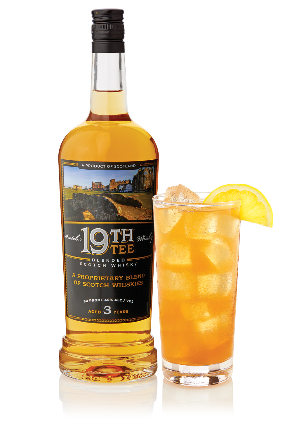 Add 2 oz. 19th Tee Blended Scotch Whisky,